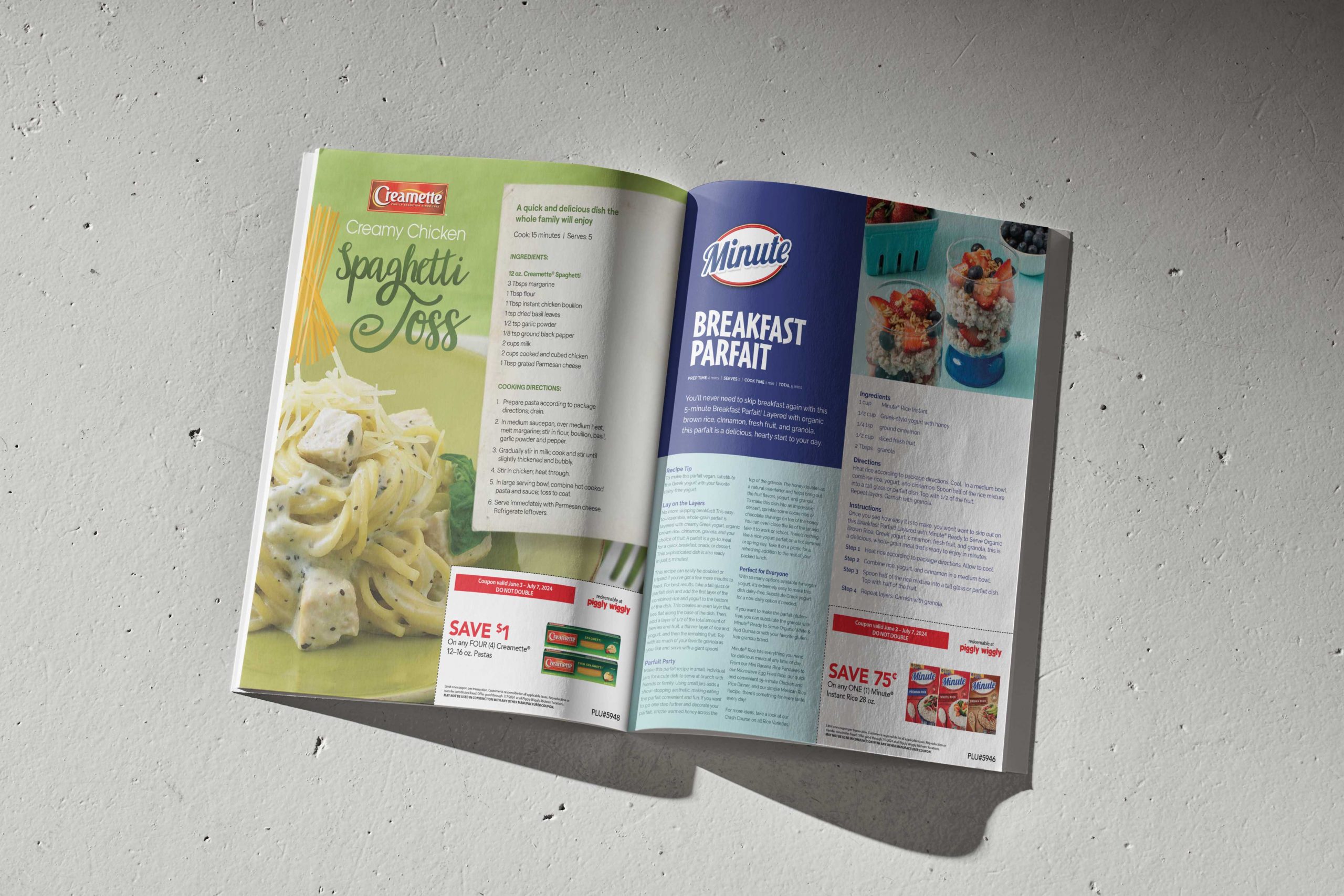 Features multiple national brands, providing space for messaging, content, and recipes, catering to varied consumer interests.